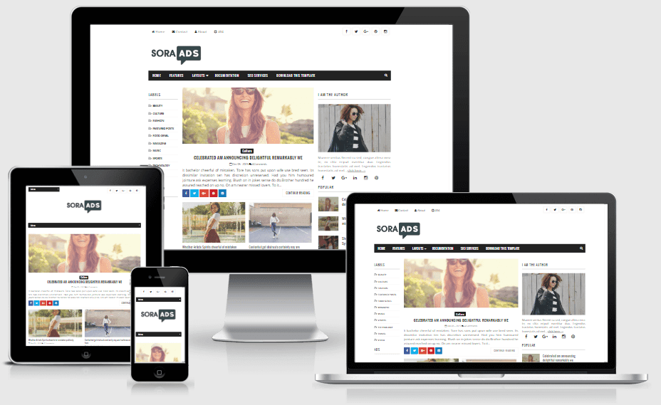 Sora Ads is a perfect advertising optimized blogger Template for Adsense users in addition to Affiliate Marketers to become high earnings through advertisements yesteryear increasing the click through rate(CTR). This is first-class Adsense-ready Blogger template amongst really impressive layouts that allow you lot insert the ads at the high-conversion places in addition to gently force your audience to click them.Live Preview Download